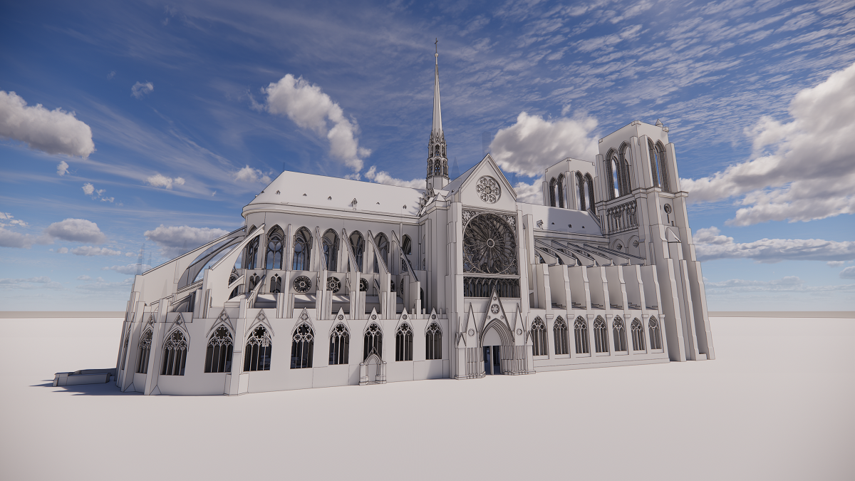 Autodesk created 3D digital visualizations depicting the Notre-Dame from multiple angles and sun positioning.